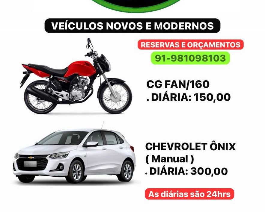 O combustível é fornecido com 3 pinos e deve ser devolvido da mesma forma. 🏍️ Aluguel de Moto: Diária: R$ 150 Mesma diária (pegar e devolver no mesmo dia): R$ 100 🚗 Aluguel de Carro: Diária: R$ 300 A partir de 2 dias de locação: R$ 250 por dia
